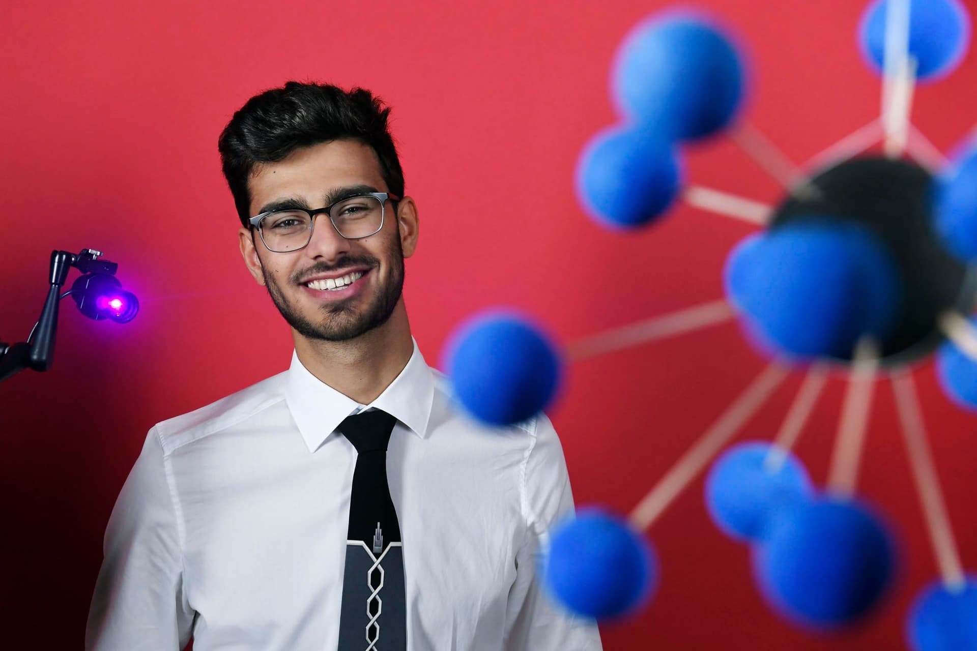Salg hat einen Weg gefunden wie die Leuchtkraft von Fluoreszenzfarbstoffen verstärkt werden kann. Hierzu nutzte er Wirt-Gast-Komplexe, die für diese Anwendung bislang nicht erforscht wurden. Eine Erklärung, wie das funktioniert liefert der Preisträger hier.
