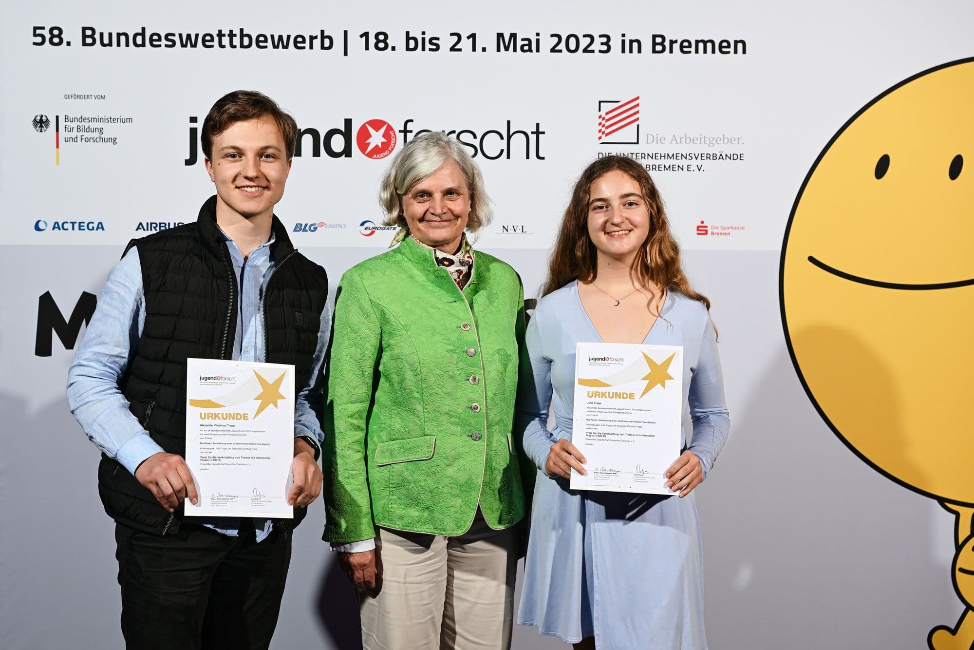 Anne Marie Bobes (18), Technische Universität Dresden, Alina Bachmann (21), Goethe-Universität Frankfurt, und Alois Bachmann (18), Humboldt-Gymnasium Berlin-Tegel