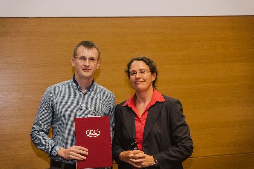 | 2022 | Karlsruhe | Dr. Fabian Hecker | Max-Planck-Institut für Biophysikalische Chemie, Göttingen | "Detection of Water Molecules on the Radical Transfer Pathway of Ribonucleotide Reductase by 17O Electron–Nuclear Double Resonance Spectroscopy" |