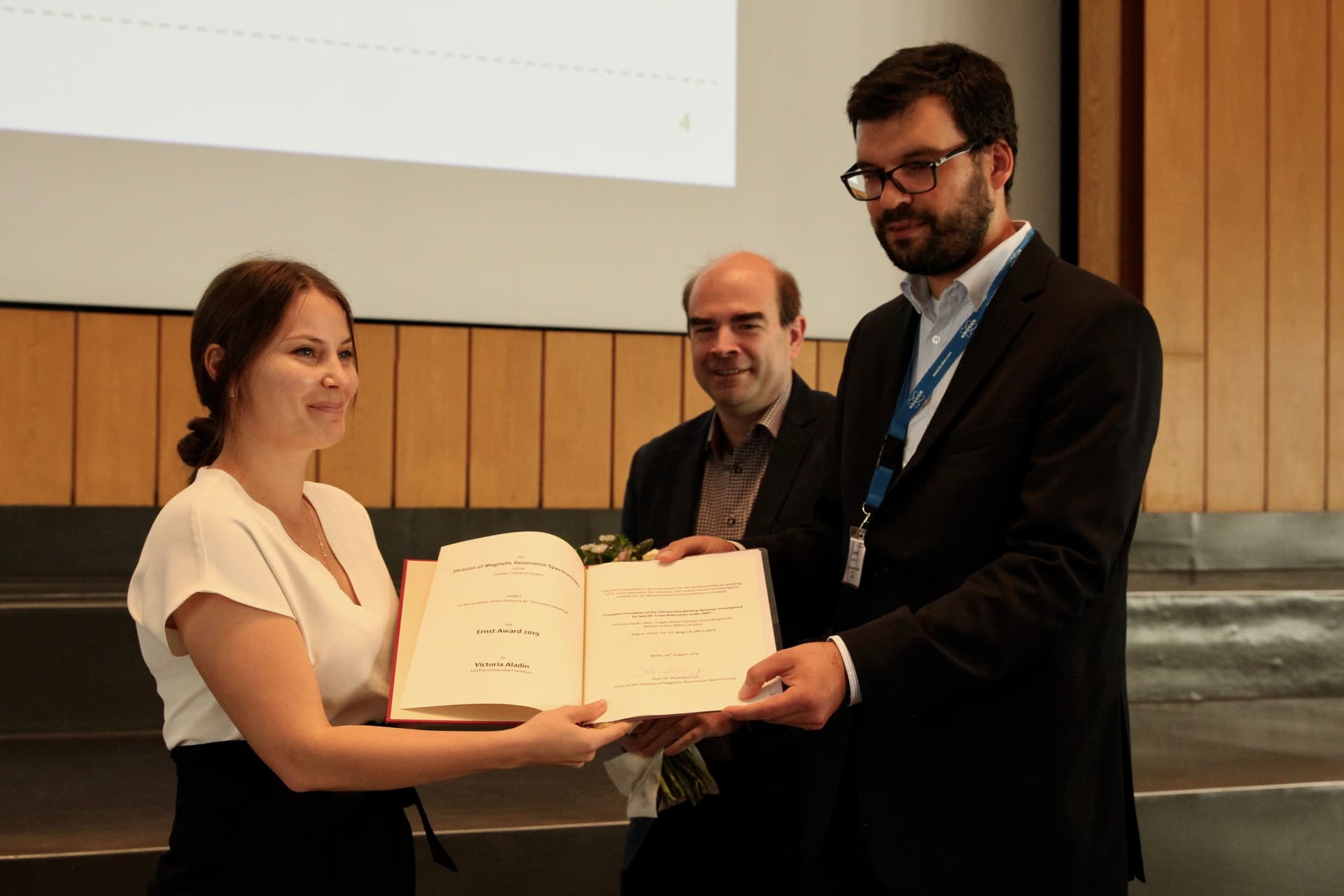 Die GDCh-Fachgruppe Magnetische Resonanz verleiht jedes Jahr bis zu drei Ernst-Preise, um je eine herausragende Publikation des wissenschaftlichen Nachwuchses in einer begutachteten wissenschaftlichen Fachzeitschrift zu würdigen. Die beschriebenen Forschungsergebnisse sollen die Methodik der magnetischen Resonanz weiterentwickeln, ihr theoretisches Verständnis vorantreiben oder wichtige experimentelle Anwendungen beschreiben; sie zeichnen sich durch besondere methodische Qualität, Innovation und Kreativität aus.