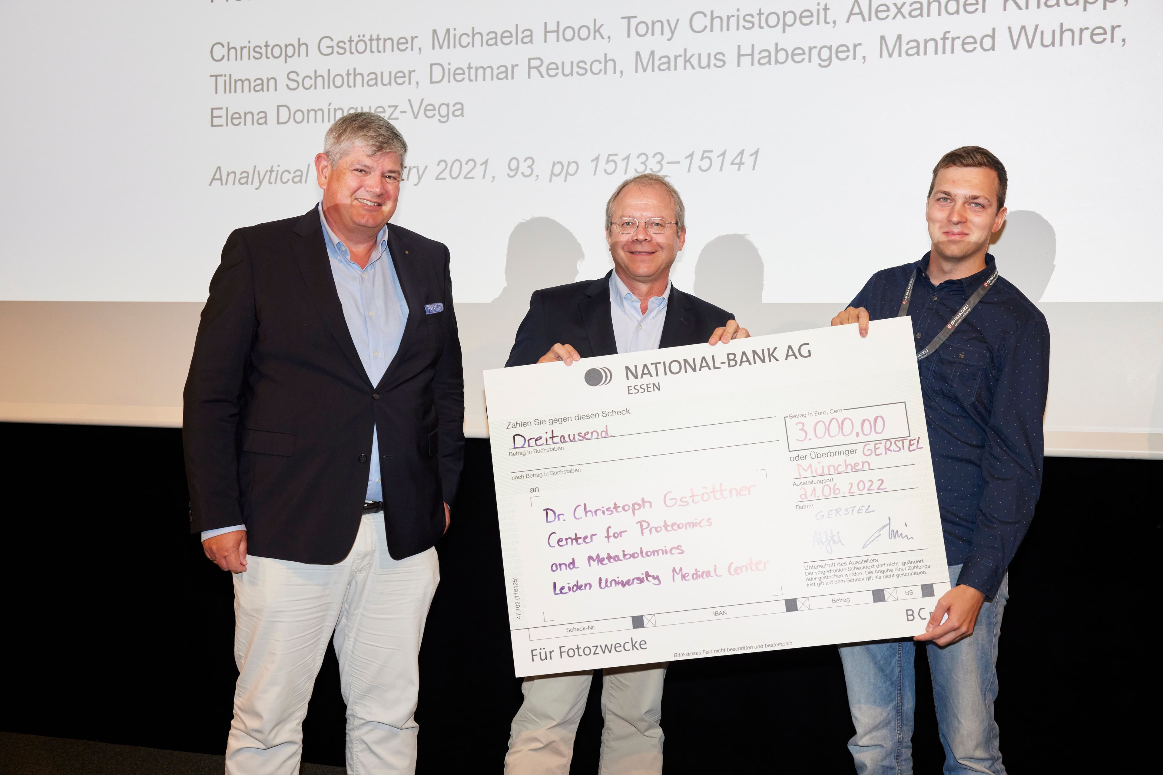 Der Eberhard-Gerstel-Preis wurde am 21. Juni 2022 im Rahmen der analytica conference 2022 an Dr. Christoph Gstöttner (Leiden University Medical Center, Center for Proteomics and Metabolomics) verliehen. Ausgezeichnet wurde seine Publikation “Affinity Capillary Electrophoresis−Mass Spectrometry as a Tool to Unravel Proteoform-Specific Antibody−Receptor Interactions” in der Zeitschrift Analytical Chemistry 2021, 93, 15133−15141.