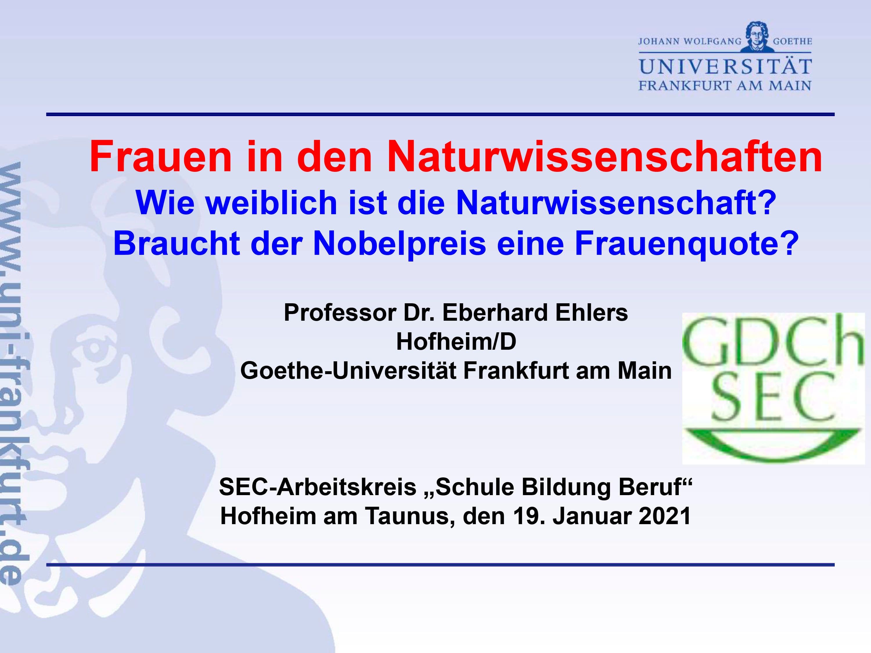 Der Vortrag hat Ihnen gefallen? Oder Sie werden verhindert sein, den Vortrag zu hören? Dann schreiben Sie Herrn Prof. Ehlers per eMail an; er wird Ihnen gern die Folien seines Vortrags zur Verfügung stellen.