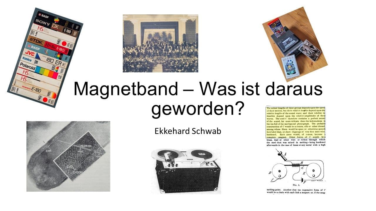 Sprache und Töne sind die Basis der Kommunikation und Informations-Übermittlung. Erst Ende des 19. Jhd. konnten erstmals mit dem Phonographen Thomas Alva Edison auch Töne gespeichert und wieder hörbar gemacht werden. Das Prinzip beruht auf der Umwandlung von Schallwellen in ein mechanisches Abbild als Speichermedium. Ebenfalls Ende des 19. Jhd. wurden erstmal von Oberlin Smith vorgeschlagen, Schallwellen in ein Magnetisierungsmuster auf der Oberfläche eines permanentmagnetischen Materials zu speichern. Diese Technologie wurde erst erfolgreich, als ab den 1930iger Jahren bei der BASF in Zusammenarbeit mit der AEG das Magnetophonband und die dazugehörigen Aufzeichnungsgeräte entwickelt wurden. 100 Jahre später nach Oberlin Smith Publikation hat die Marktdurchdringung von Audio-Kassetten (Walkman) und der VHS-Video-Kassette ihren Höhepunkt erreicht. Mittlerweile haben andere digitale Techniken das Magnetband vom Markt verdrängt, stattdessen dominieren CD, DVD und MP3 Formate. Dies gilt jedoch nicht für Großrechenzentren, wo das Magnetband nach wie vor unverzichtbar für die Speicherung der Sicherungs-Kopien ist.